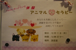 活動内容:「~蔵王の里 みんなが集う文化祭~」の『ワンワニャンふれあいコーナー』として訪問し、屋外テントの芝生にて色々な方々とふれあいして頂きました。毎年楽しみに必ずお越しいただけれる方も多く、喜んでいただけたようです。(途中、個々に「お散歩体験」や芸を披露したりもしました。)