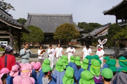 ※今回は寺院の敷地内の園で屋外にての活動でした。園児や職員の方々にも喜んで頂きながら、担当のふれあい活動と心音コーナーが順調にできました。雨の中、みなさんお疲れ様&ありがとうございました。