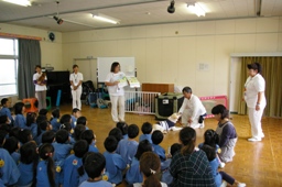 ※今回は、授業として体育館にての活動になりました。前半はスライドやクイズなどで、後半に担当のふれあい活動と心音コーナーが順調にできました。みなさんお疲れ様&ありがとうございました。