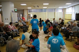 活動内容:最初に一発芸等をしながら自己紹介をした後、個々のご愛犬(猫)によるふれあいを中心に、最後に参加型のレトリーブの芸などを取り込み活動しました。(主に通所の対象者様中心)