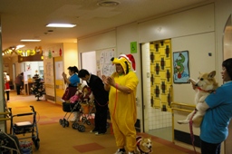 活動内容:最初に一発芸等をしながら自己紹介をした後、個々のご愛犬(猫)によるふれあいを中心に、最後に参加型のレトリーブの芸などを取り込み活動しました。(余裕がありましたので職員さんにも触れ合っていただきました。)