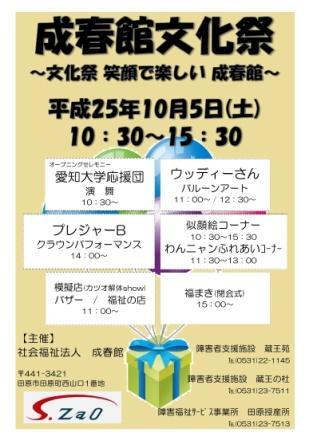 10月5日(土)社会福祉法人『成春館』様「文化祭」<田原市 >は、雨天で室内活動場所の確保が困難なため中止となりました。