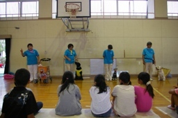 活動内容:アフタースクール(放課後子ども教室)にて、犬との接し方・命の大切さなどを交えながら、一発芸やお散歩体験を交えながら、個々の動物との触れ合い活動を実施しました。最後に児童・指導員の方々にフラフープくぐりをやって頂きました。