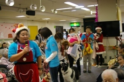 活動内容:本日は1Fフロアで大勢の対象者様に「クリスマス会」の催しの一つとして、一発芸やプチアジなどを披露しながら、短い時間でしたが、ふれあって頂きました。その後2Fにも上がり少しだけ触れ合い活動しました。