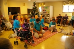 活動内容:今回は最初に一発芸等しながら自己紹介をした後、個々のご愛犬(猫)によるふれあいを中心に活動しました。途中、お一人の方が散歩体験されたりしながら、最後にレトリーブの参加型の芸を職員様も含めて取り入れました。