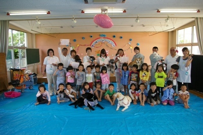 活動内容:幼少期の教育の一環として動物愛護精神の高揚を促す目的のもと、愛知県動物保護管理センターの協力団体として、「動物ふれあい教室」の心音計・ふれあいを園児約60名を対象に活動しました。※安城市議会議員の方の見学と安城ホームニュースの取材もありました。