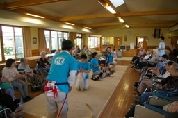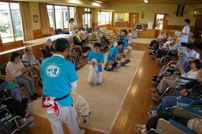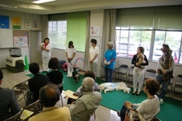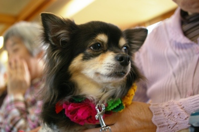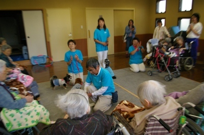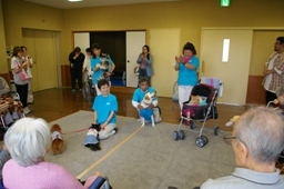 活動内容:最初に一発芸等しながら自己紹介した後、個々のご愛犬(猫)によるふれあいを中心に活動し、最後に参加型ゴム跳びを職員の方も含めみなさんにやっていただきました。(今回は、最初の挨拶を「沢野」さんが、総合司会を「氷室」さんが担当し進行しました。)