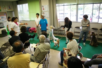 活動内容:センターでは犬の譲渡を希望される方とこれから犬を飼おうと思っている方、及び、犬を飼っている方を対象に、犬の飼い方講習会を開催しています。適切な飼い方、法令遵守、しつけ等について講習を行っています。今回は、協力団体ということで、しつけデモンストレーション(実演)を担当し活動しました。