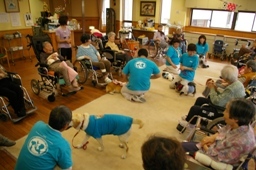 活動内容:最初に一発芸等しながら自己紹介をした後、個々のご愛犬(猫)によるふれあいを中心に、途中で個室にもお邪魔し、最後に参加型のゴム飛びを取り込み活動しました。(今回は、総合司会を「氷室」さんが担当し進行しました。)