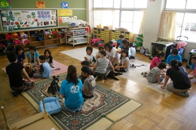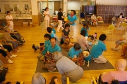 活動内容:最初に一発芸等しながら自己紹介をした後、個々のご愛犬(猫)によるふれあいを中心に、最後に参加型のゴム跳びを(職員さんも含め)取り込み活動しました。
