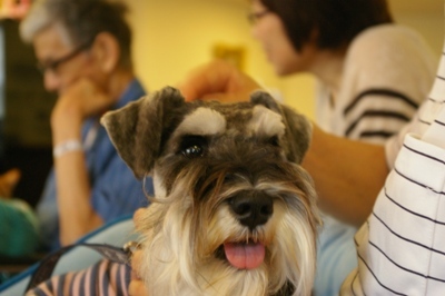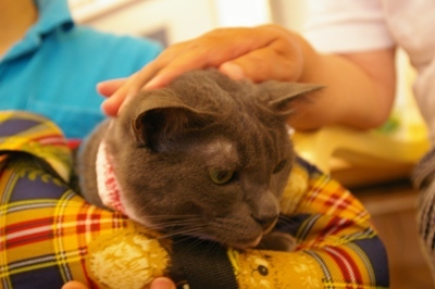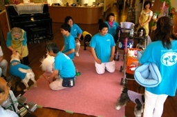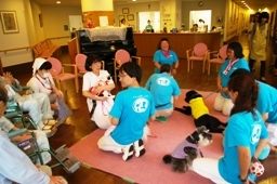 活動内容:最初に一発芸等をしながら自己紹介をした後、個々のご愛犬(猫)によるふれあいを中心に活動しました。患者様とそのご家族をはじめ、病院関係者の方々から病院ボランティアの方々までふれあっていただきました。(今回は、最初の挨拶を「大嶽」さんが、総合司会を「氷室」さんが担当し進行しました。)