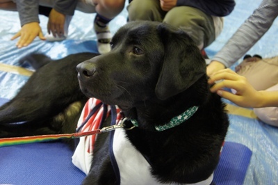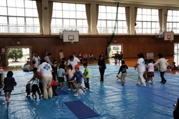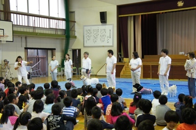 ※今回も授業として体育館での活動になりました。前半は紙芝居やクイズなどで、後半に担当のふれあい活動と心音コーナーが順調にでき、追加でお散歩体験もしました。みなさま、お疲れ様&ありがとうございました。