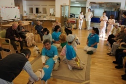 活動内容:最初に一発芸等しながら自己紹介をした後、個々のご愛犬(猫)によるふれあいを中心に、最後に参加型のゴム跳びを(職員さんも含め)取り込み活動しました。