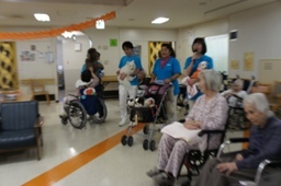 活動内容:本日は、1Fフロアで最初に自己紹介のご挨拶をし、特に芸の披露等なしで、時間いっぱい、ゆったり多くの方々に触れ合って頂きました。他の階には上がりませんでした。