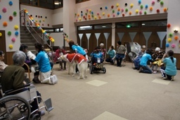 活動内容:最初に一発芸等しながら自己紹介をした後、個々のご愛犬(猫)によるふれあいを中心に、最後に参加型のレトリーブとゴム跳びを取り込み活動しました。