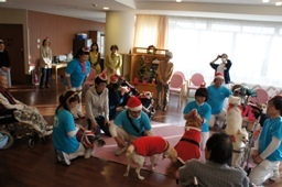 活動内容:最初に一発芸等をしながら自己紹介をした後、個々のご愛犬(猫)によるふれあいを中心に活動しました。患者様とそのご家族をはじめ、病院関係者の方々から病院ボランティアの方々まで触れ合っていただきました。