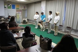 活動内容:センターでは犬の譲渡を希望される方とこれから犬を飼おうと思っている方、及び、犬を飼っている方を対象に、犬の飼い方講習会を開催しています。適切な飼い方、法令遵守、しつけ等について講習を行っています。今回も、協力団体ということで、しつけデモンストレーション(実演)を担当し活動しました。
