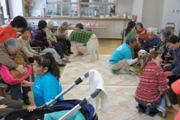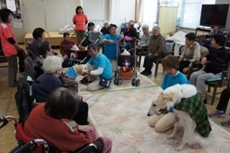 活動内容:最初に一発芸等しながら自己紹介をした後、個々のご愛犬(猫)によるふれあいを中心に、最後に、参加型のゴム跳びを職員様も含め取り込み活動しました。