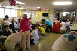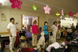 活動内容:本日は、前半4Fのグループホームで、後半は2Fフロアに上がって活動しました。最初に自己紹介のご挨拶をし、特に芸の披露等なしで、時間いっぱい、ゆったり多くの方々にふれあって頂きました。