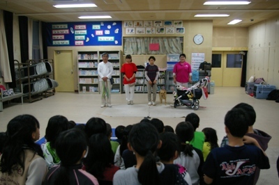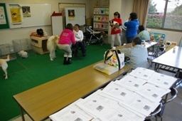 活動内容:アフタースクール(放課後子ども教室)にて、一発芸で自己紹介した後、保護猫についての解説等も交えながら、個々の動物との触れ合い活動を実施しました。(隣接の児童館からも参加児童あり)