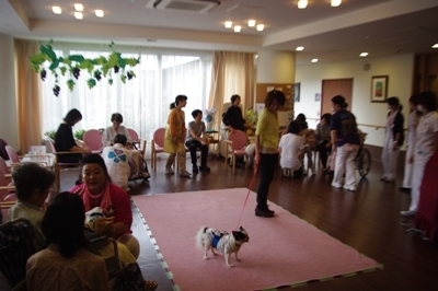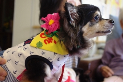 活動内容:本日は、前半4Fのグループホームで、後半は2Fフロアに上がって活動しました。最初に自己紹介のご挨拶をし、特に芸の披露等なしで、時間いっぱい、ゆったり多くの方々にふれあって頂きました。
