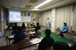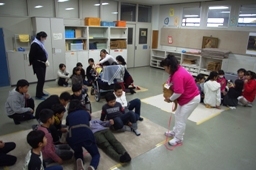 活動内容:なかよしランド(放課後子ども教室)にて、自己紹介をした後、動物に関わる様々な知識を学びながら、個々の動物との触れ合い活動を35名程の児童を対象に実施しました。