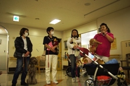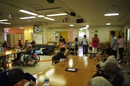 活動内容:本日は、1Fフロアにて活動しました。最初に自己紹介のご挨拶をし、特に芸の披露等なしで、50名程の対象者の方々に時間いっぱい、ゆったりふれあって頂きました。