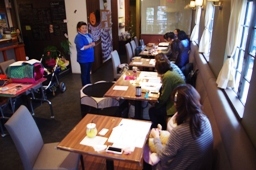 今回は、一宮での猫クラスの初回で、猫の実践なども交え講義を行いました。また、多くの方々も愛猫同伴で参加されました。見本猫は「チロル・マイケル」でした。