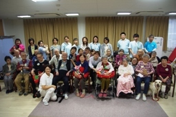 活動内容:「成春館文化祭」の『わんニャンふれあいコーナー』として訪問し、屋外テントの芝生にて色々な方々とふれあいして頂きました。楽しみにされ、待ちに待ってお越しいただけれる方も多く、喜んでいただけたようです。(途中、個々に「お散歩体験」や芸を披露したりもしました。)