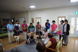 活動内容:最初に一発芸等をしながら自己紹介をした後、個々のご愛犬(猫)によるふれあいを中心に、途中で個々に犬猫の芸を体験していただいたり、懐かしいお話をしたりして活動しました。