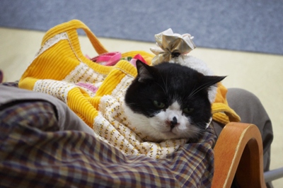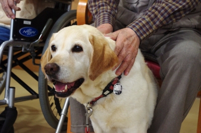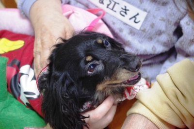 活動内容:最初に自己紹介をした後、個々のご愛犬(猫)によるふれあいを中心に、犬猫と記念写真を撮られたりしながら活動しました。また、猫におやつを与える体験も取り込みました。(移動途中デイルームの方々にも少し触れ合って頂きました。)