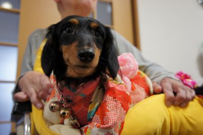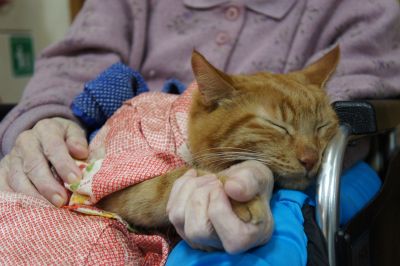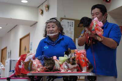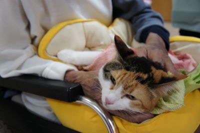 活動内容:最初に自己紹介をした後、個々のご愛犬(猫)によるふれあいを中心に、犬猫と記念写真を撮られたりして活動しました。途中、おひとりの方の居室にも訪問しました。